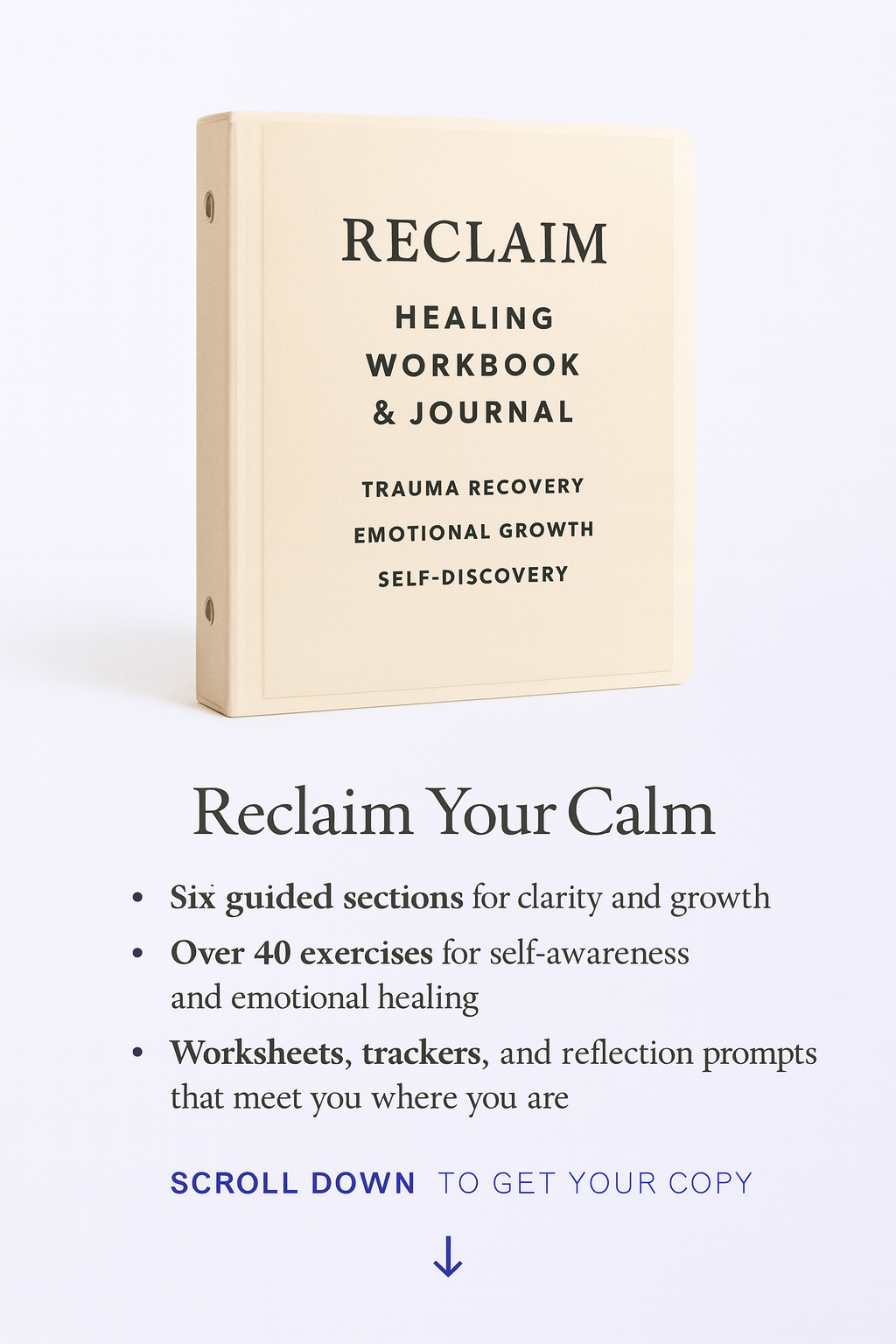 Reclaim is a structured workbook designed to help you rebuild your sense of self after burnout, heartbreak, or emotional overwhelm. It combines psychology-based reflection, gentle structure, and practical daily tools to help you find clarity, confidence, and calm again.